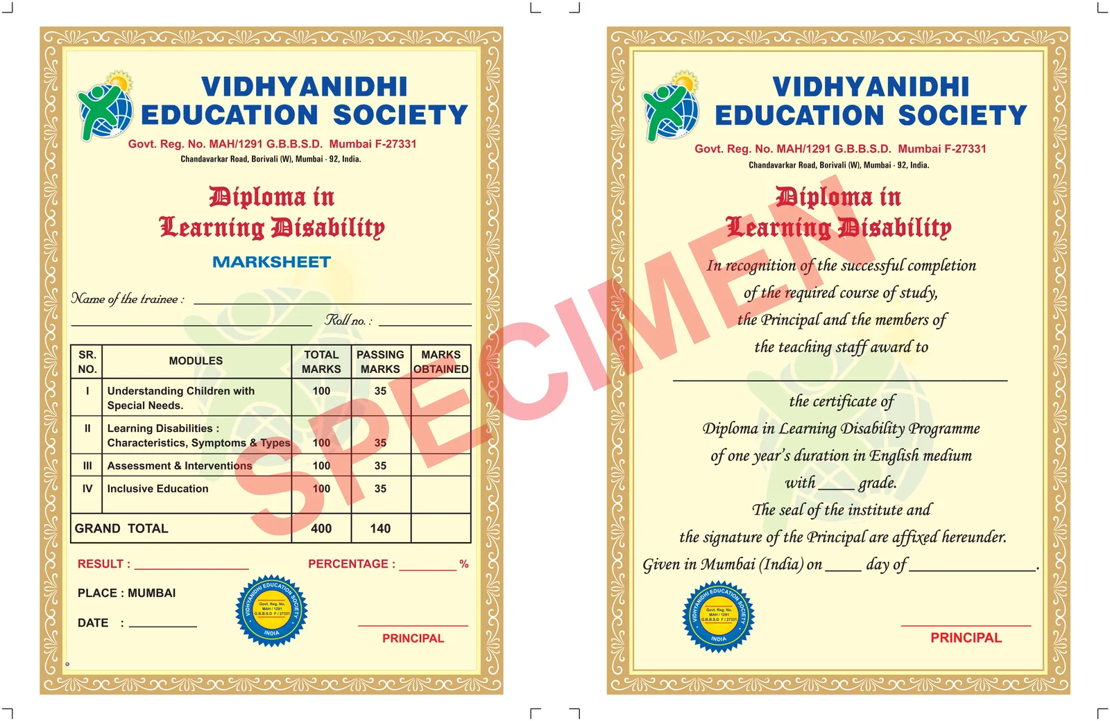 Learning Disability Certificate